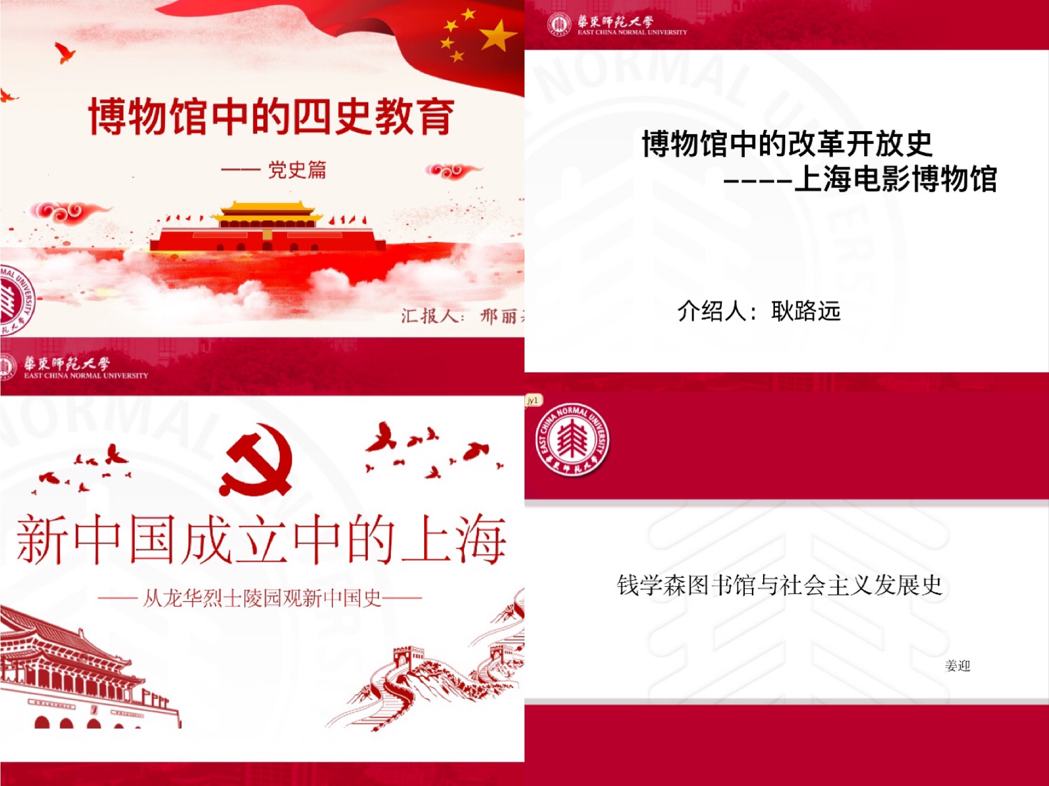 接下来,庄瑜老师介绍了几所海内外著名且有特色的高校博物馆,如中国首座高校博物馆——京师同文馆,牛津大学的阿什莫林博物馆,并提炼出高校博物馆的美育优势,即专业性强、文化品位高。讲座最后,庄瑜老师特别介绍了华东师范大学的博物馆群,讲解了这些博物馆和纪念馆中的馆藏特色,激起了大家前去参观、学习的兴趣。讲座结束,学生党员沈依沁、刘媛媛、朱雍华、郭利莹与庄瑜老师进行了问答互动,问题涵盖了如何在博物馆中开展学习、博物馆的美学价值、参观前的准备等方面。