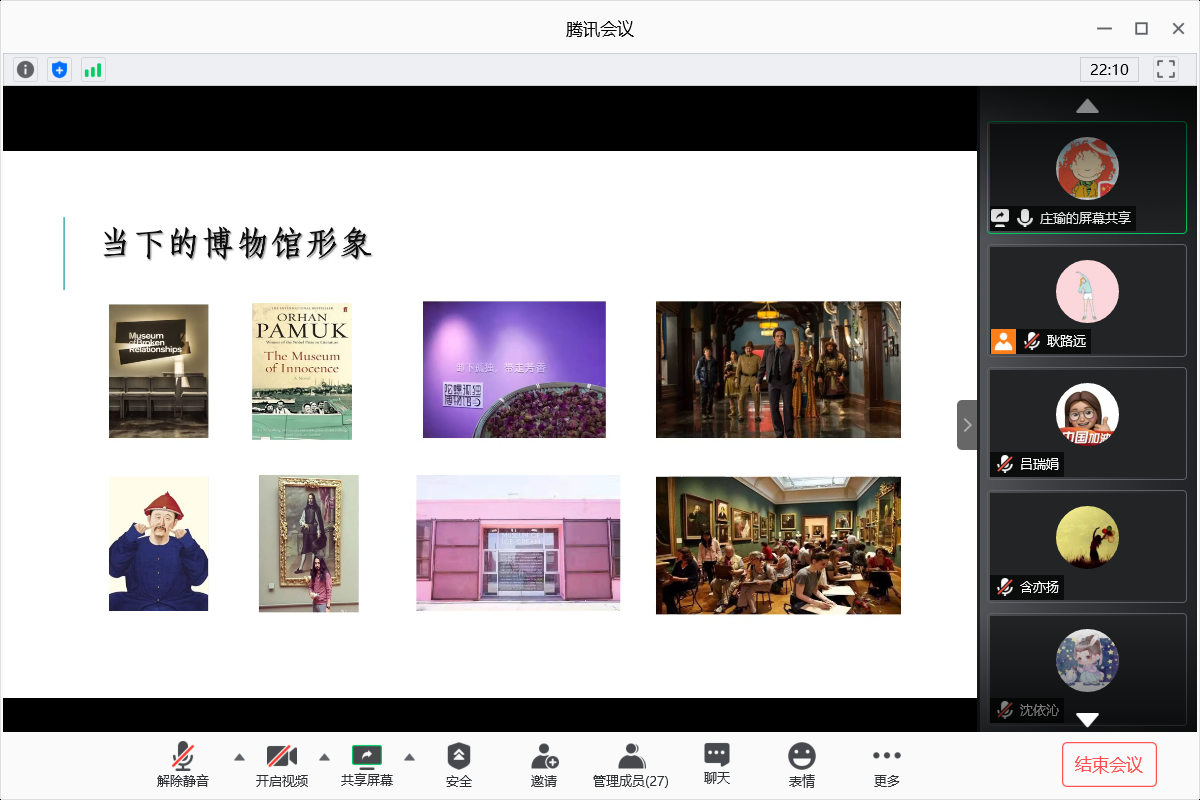 2020年6月5日18:00,外语学院2019级学术型研究生党支部在腾讯会议平台开展了“博物馆中的四史教育”专题组织生活会。会议由学生党员沈依沁主持,支部党员全体相聚云端,20余名师生党员参加了在线学习。会议主要有两项内容:“大学里的宝藏:漫谈高校博物馆的育人使命”讲座和“博物馆中的四史”相关内容分享。