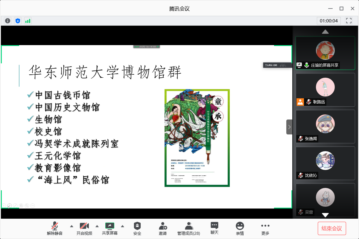 本次活动特别邀请了华东师范大学心理与认知科学学院党委副书记兼副院长、华东师范大学中外博物馆教育研究中心主任庄瑜老师,以“大学里的宝藏:漫谈高校博物馆的育人使命”为题,带领大家对中外博物馆的相关知识以及高校博物馆应承担的育人使命进行系统、全面的学习。
