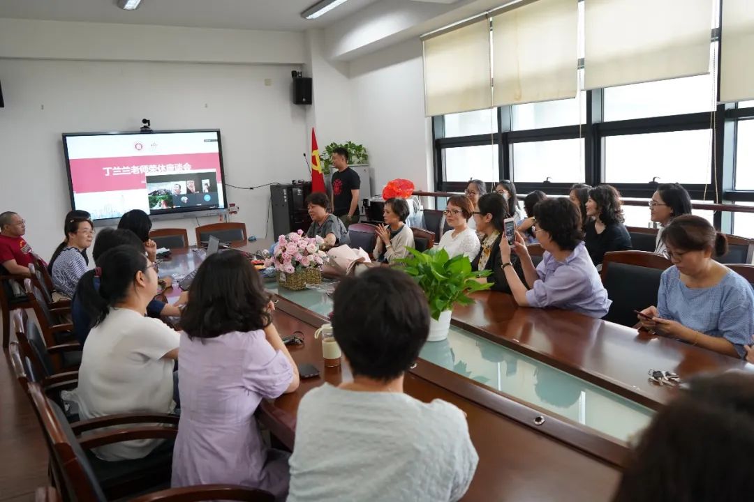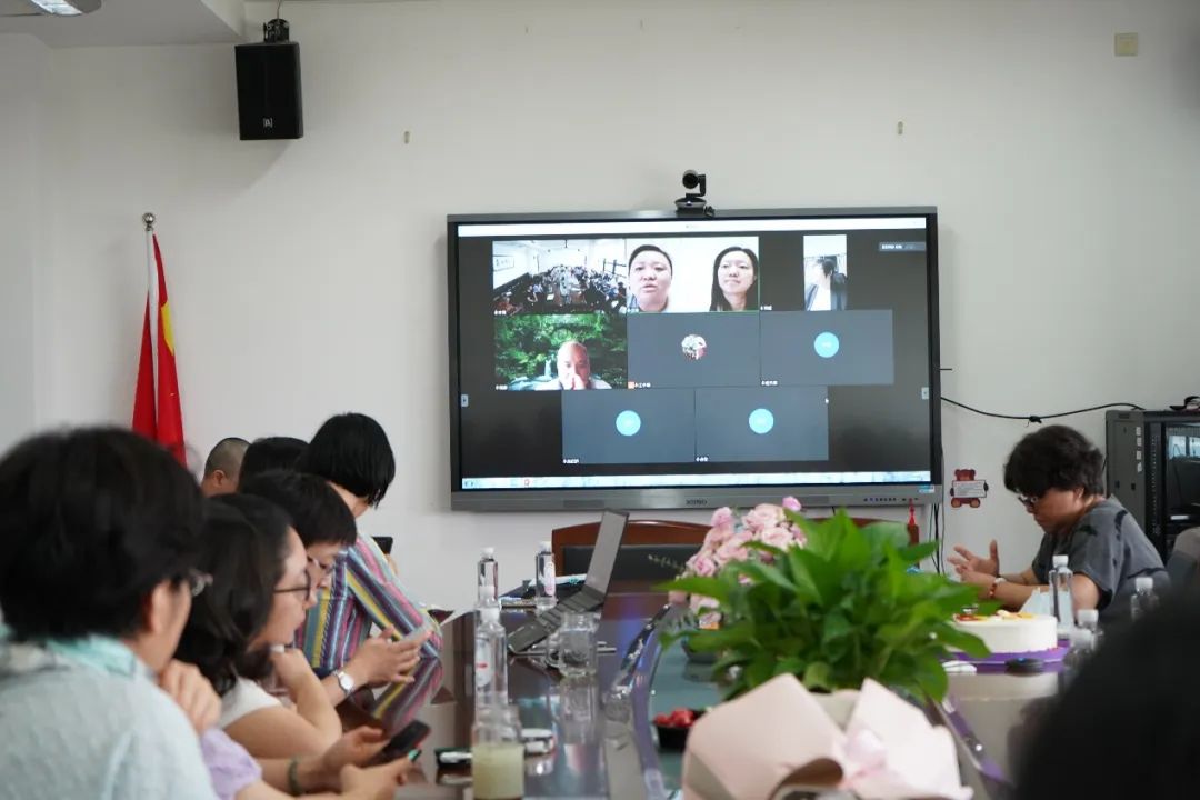 原外语学院党委书记俞黎阳老师也在会议间隙在线上与座谈会现场进行了连线。他对丁老师多年来为外语学院的人才培养做出的辛勤付出和重要贡献表示诚挚的感谢,同时也献上了祝福。