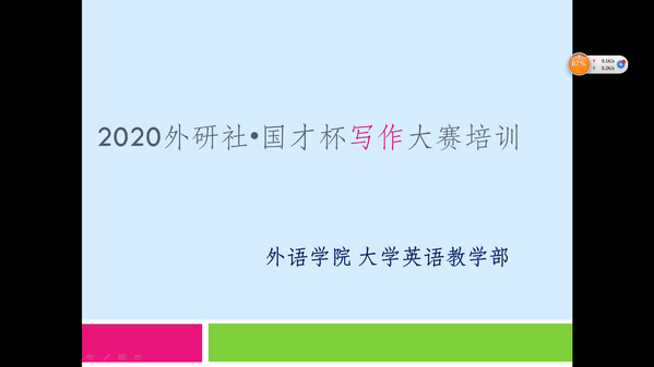 本次暑期线上英文写作培训营是大学英语教学部探索以赛促学、搭建拔尖人才培养平台、促进英语拔尖人才培养的创新举措。为充分备战2020年“外研社•国才杯”英语写作大赛,充分利用线上教学优势有效提升选手英文写作水平,我校大学英语教学部“英文写作坊”特别推出了此次暑期线上英文写作培训营。培训营共邀请了4位大学英语教学部资深写作讲师组成专业培训团队,利用腾讯会议平台,进行了8次写作培训与习作讨论。培训讲座内容包括“应用文写作”、“议论文写作”、“记叙文写作”以及“学术写作的特点”,通过教师的悉心指导,不断锤炼学生英文写作技能;在习作讨论的环节,既有教师对学员习作进行点评,又有学员进行习作的互评活动,让英文写作变得生动有趣并富有成果。
