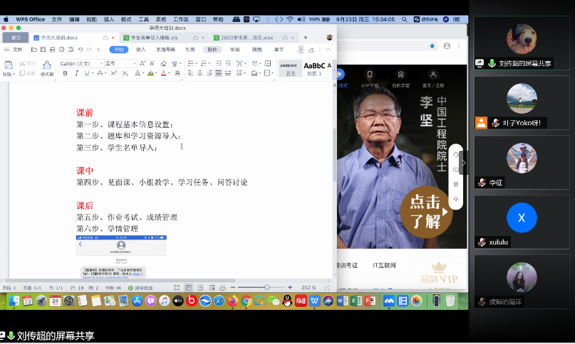 9月25日下午15:30,智慧树网运行主管刘传超老师通过腾讯会议平台向华东师大外语学院的老师们进行了基于智慧树平台进行翻转课堂设计的基础培训。翻转课堂,是指重新调整课堂内外的时间,将学习的决定权从教师转移给学生。学生在课前可以通过看视频讲座、做练习作业、阅读扩展资料、在网络上与同学讨论等形式,进行充分自主学习。教师在课堂上主要做能力的拓展与提升,可以根据学生自学的效果进行有针对性的答疑和精讲。