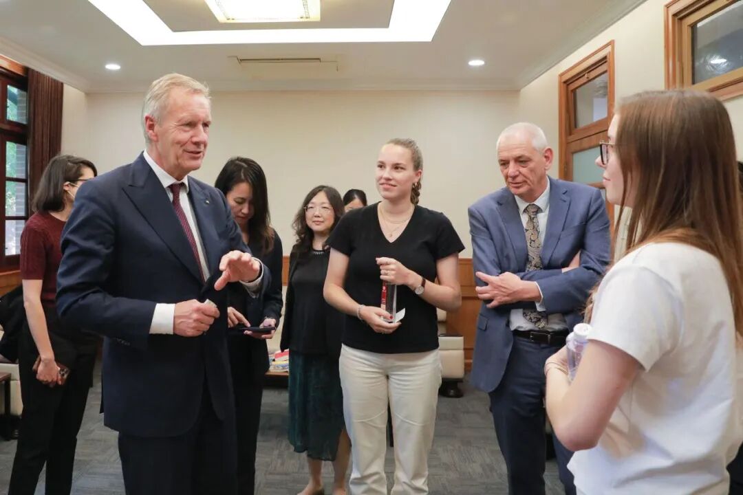 武尔夫总统在致辞中,首先对钱校长所分享的深厚德国情缘表达了由衷的理解与诚挚的感谢。随后,他围绕人工智能、环境保护、汽车产业合作等当前中德两国共同关注的重要议题,阐述了富有洞见的观点。他指出,在这些领域,中德不仅拥有广泛的共同利益,更肩负着推动全球可持续发展的共同责任。总统先生进一步强调,中德乃至中欧人民应携手并肩,共同维护世界和平,坚守联合国宪章所承载的多边主义原则与国际共识。他特别援引了洪堡、孔子与老子三位东西方文明中影响深远的智者,以他们的思想智慧为例,生动阐释了文明互鉴对于深化中德相互理解、促进民心相通的重要价值。他的论述既融汇了中华文明中“和而不同”“天人合一”的传统智慧,也贴合当代中德两国的发展现实与战略需求。