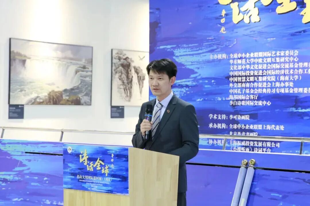 周汉民会长在致辞中说,文化是一个国家、一座城市的灵魂。中国名山大川的诗话蕴含着丰富的文化内涵和哲学思考,是中国传统文化的重要组成部分。本次巡展作品凭借其独特的自然风貌、深厚的人文底蕴和先进的生态智慧,为全球提供了人与自然和谐共存的东方范式,其世界意义不仅体现在景观的壮丽上,更在于为人类贡献了可持续发展的哲学理念与不朽诗篇。今天我们这一场跨越语言与国界的艺术对话,充分体现了海纳百川、追求卓越的上海城市精神。