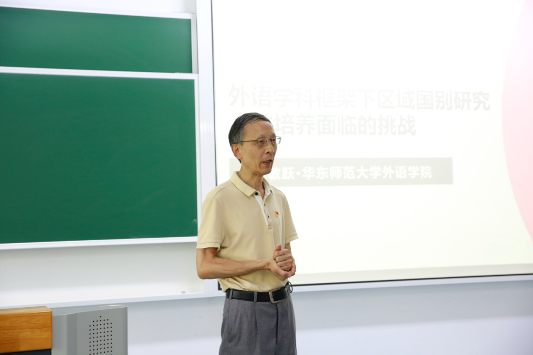 外语学院教授、特邀党建组织员侯敏跃以“外语学科框架下区域国别研究面临的挑战”为题作专题讲座。他从国际格局、学术前沿和跨学科融合等角度切入,深入剖析了区域国别研究在新时代背景下的重要意义和现实挑战,鼓励学生党员以专业所长服务国家战略,让青春绽放在祖国最需要的地方。